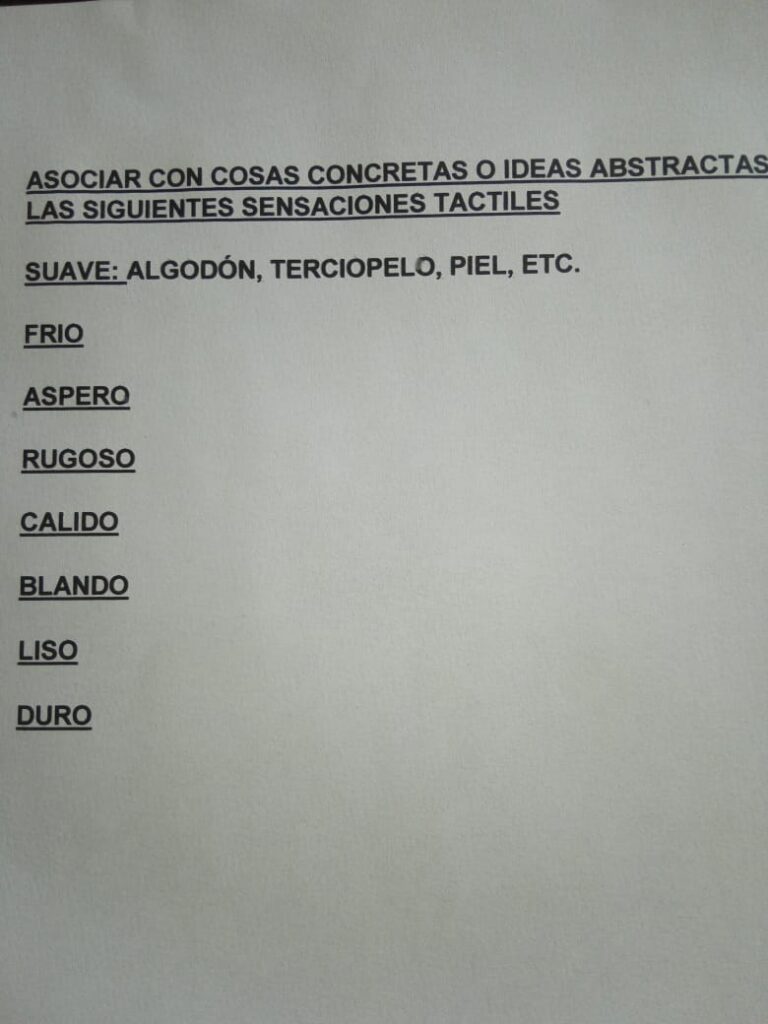 Asociar con cosas concretas o ideas abstractas, las siguientes sensaciones táctiles. Objetivo: Estimulación sensorial